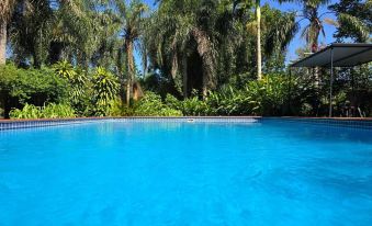 Hotel has beautiful greenery with pool. Carry Citronella! Antique wooden furniture is very soothing. Breakfast was fabulous. Staff is very friendly. It’s 25 minutes to airport, check taxi rate ahead, if you choose hotel to arrange it so that there is no surprises as well as allow 30 minutes wait time to avoid delays going to airport. The city is close by as well as the border to Brazil to see Brazilian side Iguazu Falls. I highly recommend this hotel.