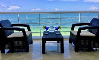 Open and bright beachfront luxury home in the Costa Blanca complex ,1528 square feet with spacious ocean front balcony for cocktails, dining or early morning coffee witnessing the sun rise. Gorgeous wide open floor plan, marble floors . Floor to ceiling views of the aqua marine blue ocean as you walk through the front door. Kitchen with built in gourmet Wolf induction 36” cooktop, granite counter tops , custom shaker cabinetry, with built in Subzero refrigerator with purified water ice maker. Dedicated bar area with bar sink and triple filtered reverse osmosis drinking water. Amazing ocean views from living room, bedroom and private penthouse veranda. Large master bedroom with plenty of built in closet and drawers, desk area, en suite bathroom with large tub and rainfall shower. Large windows with sunrise and ocean view every morning. Sounds of the ocean waves to sleep by. Large Guest bedroom with 2 queen size beds , natural light, built in closet and drawers, pleasant view and ambience of the neighbohood. Third bedroom just off the kitchen is smaller with Murphy bed and an en suite bathroom.