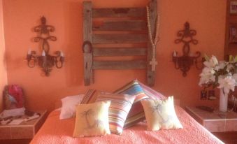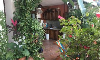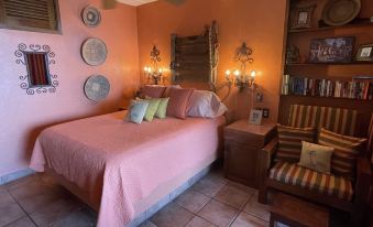 The interior of the studio is decorated in a traditional rustic Mexican style. The bathroom consists of a tiled shower and a separate dressing room with lavatory. You will have plenty of storage with a closet in the dressing room and an antique bureau filled with many drawers. There is also a large storage room located in the outside terrace. Relax in the queen size bed while watching cable TV or your favorite DVD on the 40" flat screen. For your convenience, there is a desk complete with a book shelf, as well as high speed wi-fi.