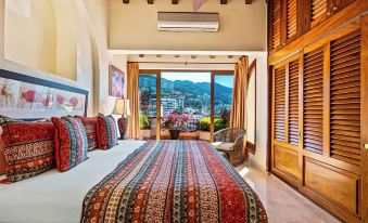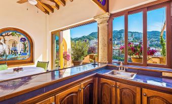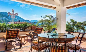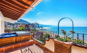 This penthouse unit is located on the top floor (7th floor) and is over 5,000 square feet. It has four bedrooms and five bathrooms. Two bedrooms have king beds and one bedroom with two double size beds as well as one add on bedroom with a queen size bed. The unit comes fully equipped with everything you could need for your stay including items to prepare meals at home, as well as towels and linens, purified water, and maid service is three times a week. You'll spend hours on the wrap around balcony or in the jacuzzi with a gentle breeze enjoying the sights and sounds of Vallarta.