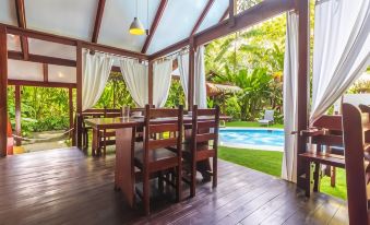 Enjoyed our 3 night stay in a separate bungalow - spacious & comfotable (but no aircon). It is set in forest with agoutis wandering around eating fallen fruits, & toucans flying overhead. The restaurant was fine, but easy to walk to others nearby too. Good parking & close to many good beaches & wildlife tours. The pool was pleasant on a hot day