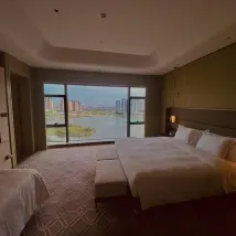 The hotel is very new, and the lake view room has a great view. It's just that the lobby was a bit hot when checking in, and it would be better if the air conditioning temperature was lowered. The person who checked me in at the front desk was very welcoming, and after checking in, he also introduced the swimming pool and gym. I will come back next time if I have the chance.