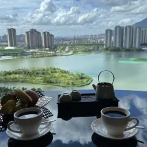 We originally booked another hotel, but due to dissatisfaction, we decided to stay at the Crowne Plaza. Mr. Liu at the front desk warmly welcomed us and explained key information like breakfast hours and the best times to use the pool. Our initial awkwardness was instantly dispelled, and we were very satisfied. The hotel is well-equipped, the views are unparalleled, the restaurant has a wide variety of dishes, and the quality is only just okay. The service is warm and attentive, and we even greeted the housekeepers and engineering technicians we met along the way. Since it's new, the hallways can be a bit smelly. The lake view and pool are beautiful, making it a perfect vacation getaway.