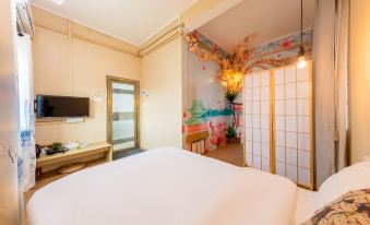 家人們!必須給這家住宿來個五星好評🌟 房間佈置超温馨,床品軟乎乎的,圖案也很清新,睡一覺太舒服啦~ 衞生做得特別到位。房間設施很全,空調製冷給力,電視、Wi - Fi 啥的都好用,牆上的編織掛飾和小蝴蝶裝飾,氛圍感直接拉滿🦋 窗外光線好,採光絕絕子,住這兒心情都變美啦!服務也貼心,有啥需求響應超快,下次來還選這!