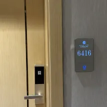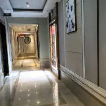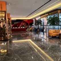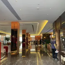 The ambiance here is fantastic, and the service is truly on par with a five-star hotel. Our luggage was delivered right to our room, and we even received a complimentary room upgrade. They also provide free late-night snacks every day, plus there's a huge parking lot. The location is excellent, making it incredibly convenient to get anywhere.
