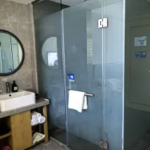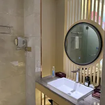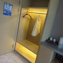 Cons: On the downside, the key card sensors for both the elevator and the room door were occasionally unresponsive. The open-plan design of the bathroom, which integrates the toilet, shower, and vanity area, resulted in poor soundproofing. A major annoyance was that whenever you approached the vanity or opened the bathroom door, the lights in all three areas automatically turned on, and there was absolutely no way to switch them off in any mode! This meant that using the toilet in the middle of the night would brightly illuminate the entire room and the bed. The loud toilet flush was also very disruptive to sleep, and to make matters worse, the toilet itself had an unpleasant odor. These issues are a direct consequence of the open-plan bathroom design that connects directly to the sleeping area! Furthermore, there's no main overhead light in the room, leading to insufficient lighting at night. There's no lamp above the desk, making it too dark for children to write or read comfortably. The bedside USB charging port was slow, making phone charging inefficient. Finally, I regrettably forgot to take photos, but upon checking in on the first day, I noticed noticeable stains on the sofa and chairs, which significantly lowered my initial impression.