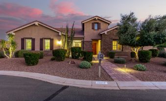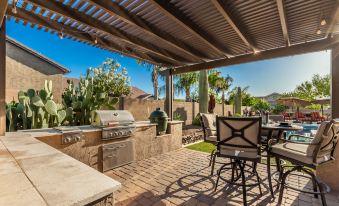 This backyard oasis so spectacular it is hard to describe. The immense heated lap pool is the centerpiece of the backyard. With a raised spa that is large enough to accommodate 8. To the west there is a firepit area, a luxury loungers for soaking in the Arizona sun. On the east side of the yard is a pergola with outdoor built in BBQ, an egg BBQ and smoker and is the perfect place to dine alfresco. Further east is a private putting green designed for hours of enjoyment. Under-cover as you first step outside is a full outdoor living room and TV so you won't miss any of the action.