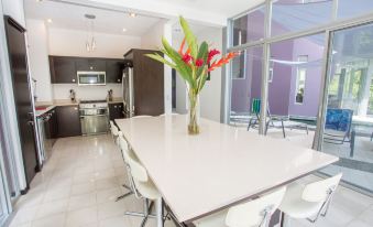 The open concept floor plan truly gives you the feeling of being in the jungle. Both the kitchen and sitting room open up entirely to the pool and patio area. The master bedroom features a Japanese soaking tub with views of the surrounding jungle from its own private oversized balcony. All bedrooms, kitchen and sitting area have eco friendly inverter technology air conditioners along with ceiling fans. The bedroom located on the ground floor is accessible for the disabled.