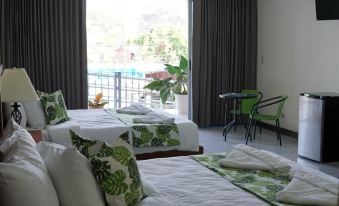The nearest airport is Quepos Airport, located about about 12 mins from hotel by car (8.0 km) away.How do I get to HEAVEN DOORS FAMILY DELUXE ROOM from the nearest airport?