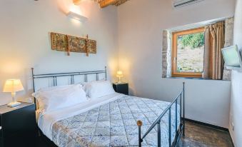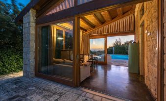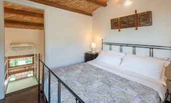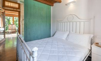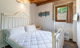 Villa Gisolfo consists of three rooms, the wooden and stone building with the typical cane and plaster roof, which houses the two bedrooms with private bathroom on two floors, the bright glazed living room, overlooking the veranda on one side and the external brick kitchen with bbq, kitchenette and dining table for 6 people for tasty outdoor meals and grills. On the south-west side, on the other hand, the glazed living room overlooks the private panoramic swimming pool (5x10 m), equipped with parasols, sun beds and an outdoor shower, is illuminated at night.