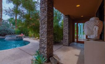 This unique and tranquil getaway home has been designed to experience a Zen feel all around. Sitting on over 17,000 sq. ft. with no neighbors on either side offers true privacy as if you are on your own island. Modern open floor plan. Beautiful soaring windows and sliding glass doors throughout. Sub-Zero and Wolf appliances, custom Saltwater Pool and Spa with tanning shelf. Enjoy and unwind with views of gorgeous mountains. Plenty of outdoor sitting areas. Built in BBQ area.
