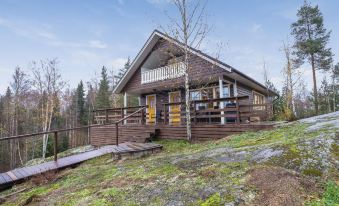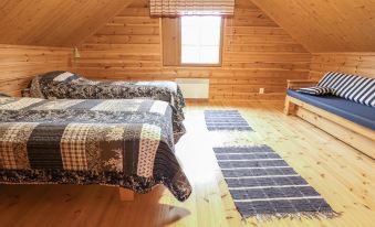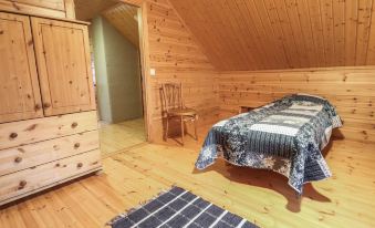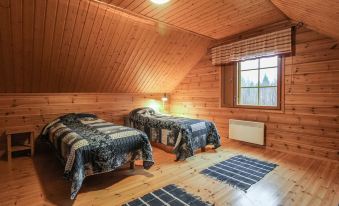 2-storey log cottage 2004, kitchenette, living room with fireplace, bedroom with two beds, bedroom with two beds, toilet, sauna (wood-burning stove), shower room, dressing room. Upstairs lounge (foldable sofa bed 145x190 cm), bedroom with two beds, balcony.