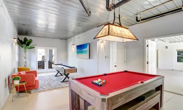 Lastly, the downstairs game room was designed for you, too! Enjoy a game of pool, shuffleboard, chess or just chill and watch tv.