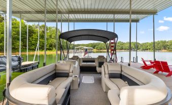 Featured in Dwell Magazine, this stylish lakefront retreat blends bold architecture with serene views of Lake Hartwell. Thoughtfully designed with a sunken conversation pit, open-concept living, and curated interiors, it's the perfect escape for couples, families, and design lovers. Centrally located near downtown and the marina, with direct lake access, outdoor dining, and peaceful wooded surroundings.
