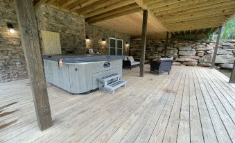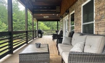 Whether inside the house or out on one of the two large decks that total almost 3,000 square feet, the chance of seeing deer, turkey or the occasional bear is strong. With enough outdoor seating to accompany more than 12 people, comfort is a focus while offering the guests enough space to not feel crowded. The upper deck offers both a covered sitting and grilling area, while the downstairs deck offers a little more privacy with a 8 person hot tub that is always going and is more than inviting.