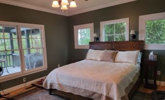 Beautiful property we stayed at for our sons wedding. We stayed here with 3 other families and there was plenty of room for all of us, it all worked out so so well. Kids enjoyed the rope swing and water so much. Adults hung out, grilled, played cards, relaxed on the HUGE relaxing back patio. Plenty of areas for parking.