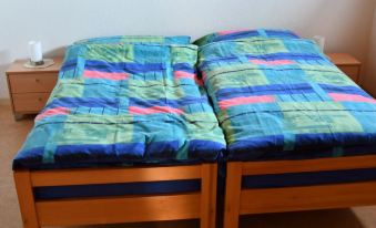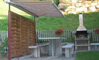 The ground floor apartment features one bedroom with two single beds and an open living area with a kitchenette. The bathroom is equipped with a shower and toilet. A lawn with a barbecue area is available, ideal for enjoying time outdoors. You can park your car directly in front of the house.