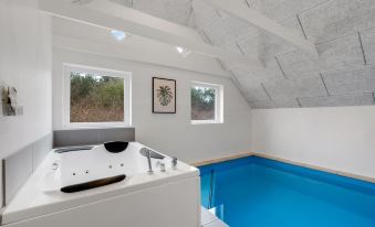 Single-family house, built in 1993. 800 m from the sea. Private: natural state property 2'300 m2, indoor pool (3 x 8 m, 2'5.5 m2, depth 140 - 140 cm). Terrace (100 m2), barbecue, children's playground (swing). In the house: sauna, washing machine, tumble dryer. Parking at the house. E-charging station. Grocery 2.5 km. The owner does not accept any youth groups. "Severine" - from the sea", 5-room house 201 m2. Object suitable for 12 adults + 1 child. Living room with TV, video, CD-player, hi-fi system and DVD. 1 room with 1 double bed. 1 room with 1 double bed. 1 room with 1 double bed. 1 room with 1 bed. 1 room with 1 double bed. Kitchen (oven, dishwasher, 4 ceramic glass hob hotplates, microwave, freezer). 2 showers/WC, hydro massage bath. Upper floor: open gallery with 3 beds. Facilities: children's high chair, baby cot. Internet (WiFi). Please note: non-smokers only. Maximum 2 pets/ dogs allowed. 760-15381