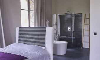 It consists of a very large main room (living room, kitchen, dining room), a large suite and a secondary bedroom. Each room has a bathroom. A scullery and a laundry room are also accessible.