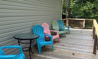 Nestled in the Daniel Boone National Forest, alongside the beautiful Rockcastle River, our lovely property offers a cozy retreat for guests. Located just 4 1/2 miles off I-75 at Exit 49, with a comfortable king bed and a queen bed, you'll have a restful night's sleep. Whether you are coming to go kayaking down the river, hit the trails 4-wheeling, hiking nearby, or simplify relaxing on the back deck, or sitting around the fire-pit, "River Run" is the place for you! The two bathrooms are equipped with everything you need, towels, washcloths, shampoo and soap, including a hair dryer. Master bath has walk-in shower, 2nd bath has a shower & tub. The kitchen has a dishwasher, microwave, coffee maker, and all the cooking essentials, a grill is located on the back deck. "Wildcat RV Park" is just a few miles south on Highway US25, and ATV riders are welcome w/fenced in secure parking and turn around area. Kayak rentals available nearby. Renfro Valley Entertainment Center is just a few miles north at Exit 62. 2 gate entrances, one for single vehicles, and for trucks & trailers. There is a security light located near the parking area in front of the home. Outdoor security camera's on the property.About pets:No pets allowed.About checkOut:Check out before 12:00 PM.About children:Children allowed: ages 0-17.About checkIn:Check in after 4:00 PM.About smoking:Smoking is not permitted.About minBookingAge:Minimum age to rent: 21.About events:No events allowed.