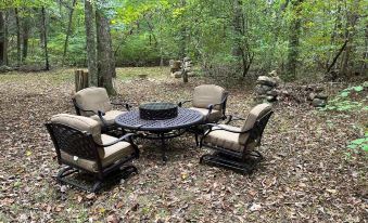 If coming in locally and planning to use the deck for lounging, might consider bringing deck chairs. The deck has a porch swing, a picnic table, and two wooden benches. There are pads for the chairs around the firepit (we might have tried using the pads on the deck had it not been so hot when we visited).