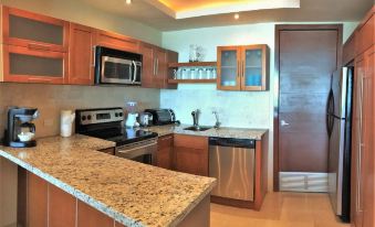 Make yourself comfortable in this air-conditioned condo, featuring a kitchen with a full-sized refrigerator/freezer and an oven. There's a private furnished balcony. A flat-screen television with satellite programming provides entertainment, while complimentary wireless Internet access keeps you connected. A private bathroom with a separate bathtub and shower features a jetted bathtub and complimentary toiletries.