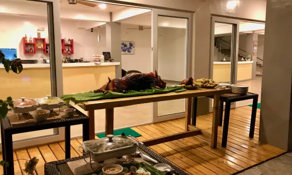 Very quiet and peaceful location. Very clean and tidy. We loved the swimming pool and lounged there often. The food was good, but then we discovered the “hack” for enjoying great dinners at Sunset Cove! In the morning, Simply ask the kitchen what seafood is fresh. (In our case it was usually some combination of shrimp, calamari or crab). Then tell them which of the fresh offerings you would like for dinner. They will suggest a couple of preparations to choose from, such as Shrimp Sinigang, or Calamari Curry ( very tasty!) Charo runs the show at Sunset Cove, knows everything and everybody in the neighborhood. Lean on her for great advice. Shout out to Cris Joyce and Christopher who are generous, warm and great hosts in every way possible. They made our time at SC very special. Romblon Fun Divers were also great. We saw tons of stuff and always felt safe. Very quiet and peaceful location. Very clean and tidy. We loved the swimming pool and lounged there often. 5 stars!
