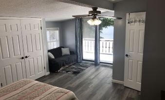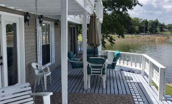 This lake house is clean, nicely decorated and set up well for large or multiple family stay. Kitchen area has a large dining table and living room has comfy seating for family gatherings. The bedrooms are also large with quiet seating area and beds for all age levels. It offers every amenity needed to enjoy for your stay! The main deck is large, lots of seating and the 3-person swing with lake view was a favorite spot. Parking is limited and the access road is single lane, not accommodating to towing boat/trailer. This host was quick to respond for assistance.