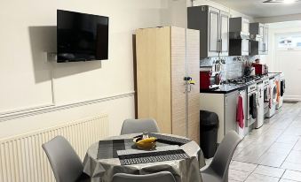 Featuring free toiletries, this studio includes a private bathroom with a bath and a hairdryer. The studio has parquet floors, a seating area with a flat-screen TV, a dining area, a wardrobe, as well as heating. The unit has 1 bed. Penn Garden Apartments are located in London Romford within a quiet residential area. There are 2 two double bedrooms apartments on the first, second floors and two, one modern single studio all with smart TV. All Apartments have a private bathroom / shower with toilet and free WiFi throughout the property. There is also a large spacious shared fully equipped kitchen with 3 cookers / oven, 2 washing machines, 3 coffee machine, 4 kettles, toasters, fridges/freezers and enough cupboard storage spaces with utensils / pans that give you flexibility to cook at home or enjoy a takeaway and to chillout within the kitchen seating / dining area. There is a communal artificial garden accessible from the kitchen for all to enjoy.About pets:No pets allowed.About checkOut:Check out before 10:00 AM.About children:Children allowed: ages 0-17.About checkIn:Check in after 4:00 PM.About smoking:Smoking allowed: in designated areas.About minBookingAge:Minimum age to rent: 18.About events:No events allowed.