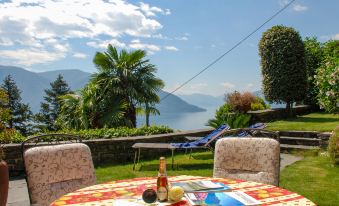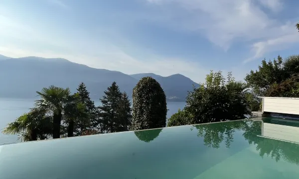 Ronco sopra Ascona 8 km from Locarno-Piazza Grande: Large, child friendly, comfortable single-family house "Villetta Irma", 290 m a.s.l.. In a secluded, quiet, sunny position on a slope, 1.8 km from the lake. Private: property 990 m2, beautiful, well-kept terraced garden, lawn for sunbathing, swimming pool angular (8 x 3 m, depth 100 - 130 cm, seasonal availability: 15.May. - 16.Oct.) with internal staircase and shutter cover. Outdoor shower, table tennis, patio, barbecue. In the house: washing machine. Motor access to the house. Stepped path (36 steps) to the house. Parking at the house, public parking 50 m on the road. Grocery 600 m, restaurant, bus stop 600 m, railway station "Locarno SBB-CFF" 8 km, shingle beach "Porto Ronco Beach" 2.9 km, thermal baths "Thermali e Saline, Locarno" 9.5 km, swimming bay 1.8 km, lake Lago Maggiore 1.8 km. Golf course (18 hole) 8.5 km, minigolf 7.5 km, walking paths from the house 50 m. Nearby attractions: Falconeria, Locarno, Locarno Piazza Grande, Ascona - Brissago Inseln, Mercato Cannobio IT, Luino IT. Well-known lakes can easily be reached: Lago Maggiore (Lido Ascona, Crodolo, Palm BEACH, Lago di Lugano, Lago di Co. Hiking paths: Cardada, Monte Bré, Monti di Ronco, Centovalli, Vallemaggia, Valle Verzasca. Please note: suitable for families, baby equipment on request (extra). Object suitable for 6 adults + 2 children. The owner does not accept any youth groups. , Ronco sopra Ascona is an ideal starting point for great walks, hikes and bike tours! The beautiful garden is lovingly laid out and very well maintained with many terraces and shady areas as well as a variety of Mediterranean and tropical plants, including Banana palms, fig tree, ancient olive tree, lemon and orange trees, persimmon trees and many palm trees. PLEASE NOTE: Small children should not be left unattended due to the terraces and the pool! Direct panoramic footpath leads into the picturesque village center. "Panorama Lakeview Lago Maggiore", 4-room house 140 m2 on 2 levels, south facing position. Spacious and bright, comfortable and beautiful furnishings: 1 open large room with 2 beds (90 cm, length 200 cm), 1 sofabed (130 cm, length 180 cm). Exit to the garden. Dining room. Kitchen (oven, dishwasher, 4 ceramic glass hob hotplates, toaster, kettle, freezer, electric coffee machine, Capsules for coffee machine (Nespresso) extra, raclette grill, fondue Set (cheese)). Shower/WC, sep. WC. Electric heating. Upper floor: open large living/sleeping room with panoramic window with 1 sofabed (160 cm, length 200 cm), cable TV and international TV channels (flat screen), radio. Exit to the balcony. 1 double bedroom with 1 double bed (1 x 160 cm, length 200 cm), bath/WC. Exit to the balcony. 2 terraces partly covered, patio partly roofed. Terrace furniture, balcony furniture, barbecue (portable), deck chairs (4). Marvellous panoramic view of the lake, the mountains, the countryside and the resort. Facilities: iron, children's high chair, baby cot for up to 2 year olds (extra), hair dryer. Internet (WiFi, free). Parking (roofed) at the house. Please note: non-smoking house. The pool mentioned in the description is for private use. Warning: We ask that you NEVER leave children unattended. As parents, you are responsible. IMPORTANT NOTE: Max 5 adults and 2 children up to 12 years! If the booking rules are not adhered to, the booking is automatically canceled! NL-00004381