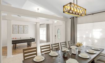As you step into our tastefully furnished Rotonda West retreat, you'll instantly feel at home. The open-concept living area welcomes you with its airy ambiance, stylish decor, and ample seating. After a long day of exploring the area, sink into the plush sofas and unwind while enjoying your favorite shows on the large flat-screen TV. There are 3 big flat TVs around the house.
