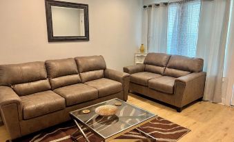 Spacious great room includes comfy sofa and loveseat, laundry rooms and deee high-speed internet.