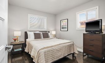 TVs w cable, DVRs in living, master, and 2nd bedtoom. Wifi, Google home, stainless appliances great linens, coffee, tea and snacks. Two living areas.