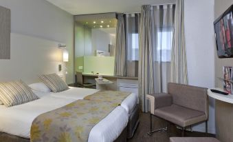 Breakfast and unlimited WIFI included in all room rates at the ibis Styles Melun hotel. This 3-star air-conditioned hotel offers 54 renovated rooms, including family suites with a stylish design. The hotel has a bar lounge featuring a terrace where you ca n enjoy a meal, a relaxation area for the whole family and seminar rooms. Free enclosed private car park available.