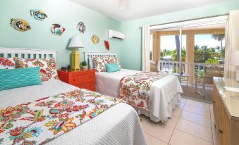 The Guest Suite has two double beds, waterfront views, air conditioning, a private screened balcony, an ensuite bath with a shower tub combo, and a walk-in closet.