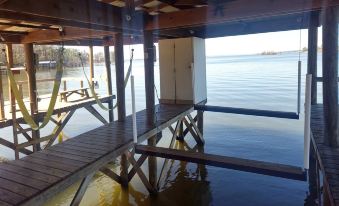 Welcome to Joie de Vivre (Joy of Living) Lake House at Toledo Bend.. The sunsets on the lake are really something that pictures can not capture. Nestled in a deep-water cove right off the main lake just across from Big Bass and Buckeye Marinas, where you have the heart of the south end of the lake at your fingertips. All furnished, this quaint (3) bedroom (2) full baths home with lots of open kitchen and living room space to enjoy the beautiful views of Toledo Bend out the windows across the back of the house. It’s definitely everything you are looking for. The master bedroom is equipped with a king-size bed and full bathroom, perfect for an adult couple. The second bedroom has a king-size bed. The third bedroom has a queen bed. Included in the 2nd living room is a full-size sleeper sofa. All bedrooms come with freshly washed sheets and comfortable full-size pillows. Both bathrooms have towels and washcloths. The house also includes a washer and dryer. The kitchen is fully stocked and includes a gas stove, dishwasher, microwave, coffee maker, toaster, blender, and all cooking and eating necessities. This home has a nice boat house with 2 boat lifts and a fish cleaning station. The boat house is also complete with stairs that go directly into the water and has it’s own brush-pile area to do some fishing right off the dock.