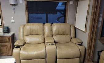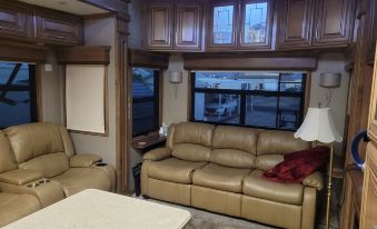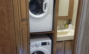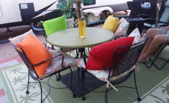 We have a wonderful community in Green Valley RV Resort. There is a mix of park models and RVs. Activities such as water aerobics, exercise classes, hikes, shuffleboard, bag toss, pickleball, and bingo are offered free of charge. We also have a club house with Wi-Fi, library, card/puzzle room, billiard room, event ballroom, and craft activities. There is entertainment bi-weekly January through March in the ballroom for a modest price. Our 5th wheel RV is a lovely furnished 1BR/1-1/2 BA including sofa sleeper, king bed, washer/dryer, gas stove top/oven, French door refrigerator/freezer with ice maker, linens, dishes, toaster, coffee pot and cooking utensils. There is a beautiful mountain view out the back window and the lot has a bright and cheery paver block patio with dining set, anti-gravity chairs, and umbrella. Basic internet is available.About pets:No pets allowed.About checkOut:Check out before 11:00 AM.About children:Adults only.55+ community.About customRules:Refundable damage deposit of $500 due upon check-in. Or buy damage insurance. We will do a walk through with tenant at check-out..About checkIn:Check in after 4:00 PM.About smoking:Smoking is not permitted.No smoking allowed..About minBookingAge:Minimum age to rent: 55.About events:No events allowed.