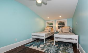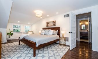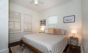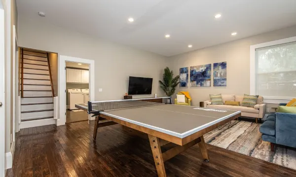 There is charm around every corner at Sun 'n Games Cottage. This 1920s home has been completely updated, yet maintains its authentic vintage features. There is so much space for everyone to relax, with three unique common areas. Our home gets its nickname from the massive great room, with plenty of comfy seating, a full-size ping pong table, and other fun games to make memories with your family and friends. The cozy formal sitting room has a piano, and the sun-drenched Florida room is a perfect place to enjoy a cup of coffee and watch TV or read a book. Fully updated chef's kitchen is fully stocked with everything you need. The downstairs bedroom has a king bed, and the updated downstairs bathroom has a tub/shower combo. Upstairs, the huge primary bedroom has a king bed, smart TV, walk-in closet, and reading nook. The fully updated upstairs bathroom features dual sinks and walk-in shower with dual shower heads. The second bedroom upstairs has two single beds. The private backyard has a dining table that seats 6, gas BBQ, and lounge furniture.
