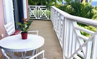 The "Sky View Suite" is our newest addition to Oasis Luxury Villas and newly renovated. With a private deck and a stunning view of the sea, Christiansted and Buck Island along side the entire span of the apartment. Enjoy coffee off your deck while hearing the sweet sounds of birds chirping, or enjoy your outdoor living space. Included: (Wifi, quite Eco-Friendly Spilt A/C units in all rooms, waterfall shower, private deck).