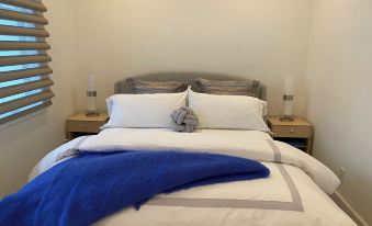 Sunny contemporary home with designer furnishings! Beautiful artwork and luxurious linens.