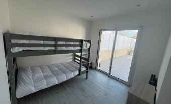 4 bedrooms: 1 bunk bed 2 single beds 1 queen bed and 1 double bed