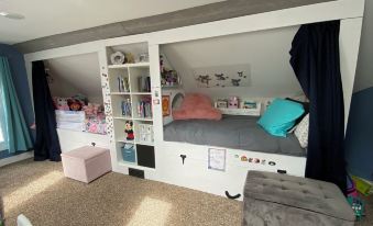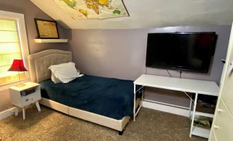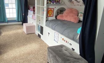 The large upstairs kids' bedroom features two twin beds and a pull-out queen bed for additional guests, providing flexibility for families or groups. Whether you're seeking a family getaway or a gathering with friends, this downtown St. Joseph retreat promises a memorable stay filled with comfort and convenience.About pets:No pets allowed.About checkOut:Check out before 11:00 AM.About children:Children allowed: ages 0-17.About checkIn:Check in after 4:00 PM.About smoking:Smoking is not permitted.About minBookingAge:Minimum age to rent: 22.About events:No events allowed.