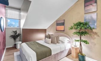 The property features three thoughtfully designed bedrooms that can comfortably accommodate up to six guests. Each bedroom has a distinct character, highlighted by bold accent walls, curated décor, and plush, comfortable beds. The primary bedroom offers a king-size bed with premium linens and direct access to an ensuite bathroom. The second bedroom includes a queen-size bed with modern styling and cozy details, while the third bedroom provides two twin beds, ideal for children, friends, or individual travelers. Every bedroom includes ample closet space or storage, soft lighting, and carefully chosen design details to ensure a restful and enjoyable stay.About pets:Pets allowed: limit 4 total.About checkOut:Check out before 11:00 AM.About children:Children allowed: ages 0-17.About checkIn:Check in after 4:00 PM.About smoking:Smoking is not permitted.About minBookingAge:Minimum age to rent: 18.About events:No events allowed.