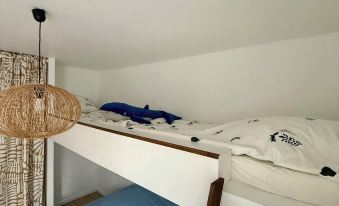 1 bunk bed and 1 queen bed
