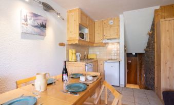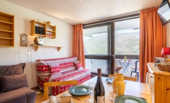 The residence Brelin is linked to the centre "La Croisette" by a public free lift 24/7 residence "Brelin". In an elevated position, directly by the skiing area. In the complex: restaurant, shopping facilities, lift, storage room for skis. Public parking. Grocery 20 m, shopping centre, restaurant 250 m, bus stop "Gare routière Les Menuires" 1 km. Sports centre 500 m, skisport facilities 50 m, slopes 20 m. Well-known ski regions can easily be reached: 3 Vallées. The owner does not accept any youth groups. Please note: Additional accommodations can be booked. "Brelin Evons 401", 1-room apartment 24 m2 on 2 levels on 5th floor. Beautiful furnishings: entrance hall with separate WC and shower. Heating. Upper floor: living/dining room with 1 sofabed (160 cm, length 190 cm), 1 double sofabed (1 x 140 cm, length 190 cm), TV (flat screen). Kitchenette (dishwasher, 2 ceramic glass hob hotplates, microwave, electric coffee machine, raclette grill). Exit to the balcony. Balcony, south facing position. Very beautiful view of the mountains and the ski run. Facilities: Internet (WiFi, extra). Please note: non-smokers only. Smoke alarm. Entrance EVONS / COTE BRUNE. 73257004434AF