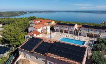 Ob die Gebäude, Wege oder Pool, alles ist top gepflegt auf 5-Sterne niveau, sauber und neuwertig. Hoch trohnend über den See mit einer Aussich die seines gleichen sucht. Überall verteilt spenden grosse Olivenbäume ihren Schaten. Ein wunderschöner Ort um die Zeit zu vergessen. Aber gleichzeitig mit der Familie spass haben. Zentraler Ort und gleichzeitig Herzstück der Anlage ist der Pool. Auch dieser steht neuwertig da. Fahrzeuge sind sicher hinter einem Tor vor fremden Zugriffen gesichert. Die Anlagen betreiber, zwei nette, am Wohl der Gäste sher interessierte Damen empfangen einen wie Familienmitglieder.