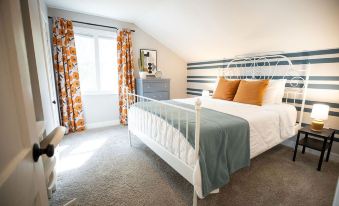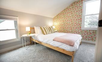 The main floor features a cozy living room, a fully equipped kitchen, the primary bedroom, and a full bathroom for easy accessibility. Upstairs, you’ll find two additional bedrooms—one with a queen bed and the other with a full-size bed—each offering a relaxing space to unwind.