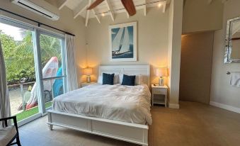 The main villa has 5 bedrooms (4 brand new king mattresses) a bunk room and 4.5 baths. The separate entrance bungalow private suite has a brand new king bed, brand new queen sleep sofa, a bunk bed, kitchen and full bathroom. Four of the five main villa bedrooms have amazing views of the turquoise ocean and white sand beach from each of their private balconies. Three spacious bathrooms are en-suite and there is an additional full bathroom that is perfect for the fifth bedroom and the bunk room. The bungalow private suite the sixth bedroom suite sleeping 6 people.