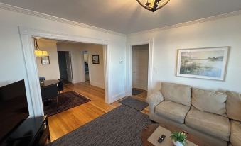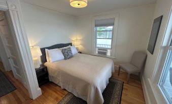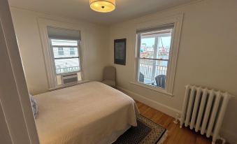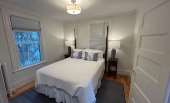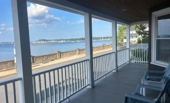 2 bedroom 1 bath with garage spot right at the base of Salem Harbor! 120 feet from the Hocus Pocus House (the Dennison home). Around the corner from Forest River Park where Pioneer Park is. ~1 mile walk to downtown. Private covered porch looking over the harbor. 2 off street parking spots . New 55” HD Smart TV with app capabilities. Brand new refrigerator, dishwasher, counters and cabinets. A/C units for both queen bedrooms. 1st floor unit in 3 family home. Owner lives on the 2nd floor.