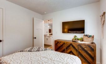 Fully remodeled and newly appointed in 2018, our spacious suite features designer decorative flourishes with a pristine kitchen stocked with all new appliances, spices and utensils to prepare your meal with seating for up to 4. For entertainment, host the big game on the living room s cable-enabled 65 inch High Definition TV. Or drift off to sleep in our plush bed watching the 42 inch TV in the bedroom. We include covered parking for 1. There is a large storage room to store your bikes or skis. The Kids portable bunk beds can optionally extend sleeping arrangements up to 6 guests.